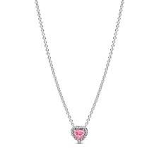 Collar Pandora con corazón rosa elevado Longitud de la cadena 45 centímetros