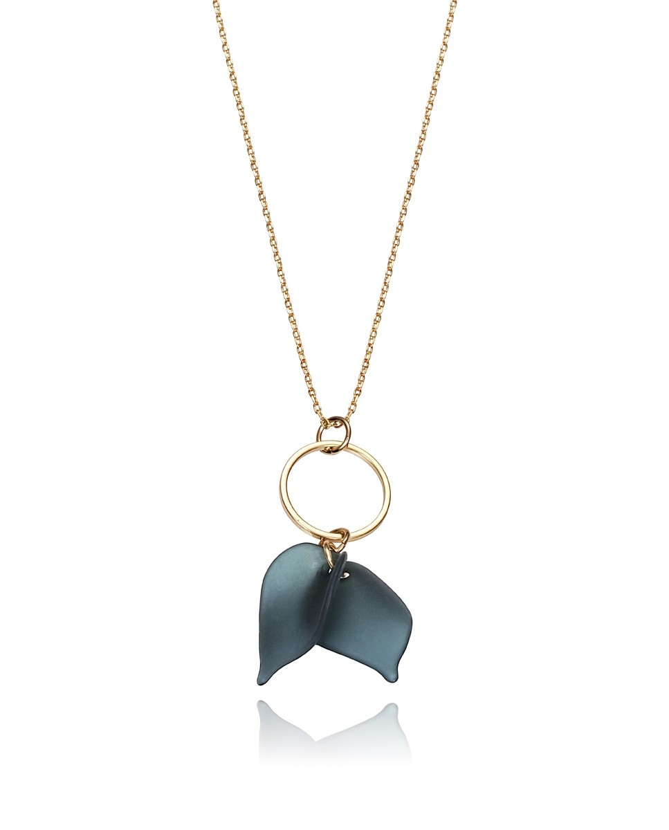 Colgante Viceroy Kiss de metal dorado y colgante con diseño de aro y dos hojas de resina color verde oscuro. 55 cm de largo y 3cm de extensión