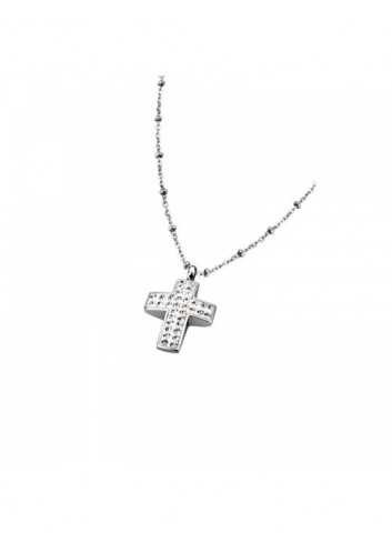 Collar Lotus Style de acero con cruz central con piedras y cadena con bolitas intercaladas
