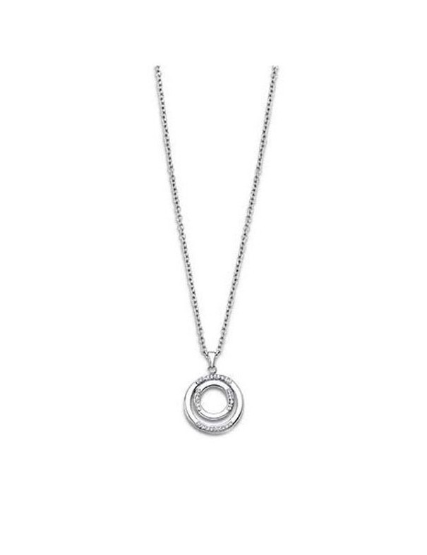 Collar Lotus Style para mujer, modelo LS1883-1/1. Es un collar Lotus de la colección Style en acero inoxidable hipoalérgico. Cadena en acero inoxidable con colgante de dos círculos concéntricos adornados con circonitas blancas y acero plateado.