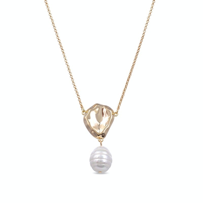 COLLAR EPIBRE METAL CHAPADO con PERLA Piedras: 158 Acabado BAÑO DE ORO AMARILLO DE 18 QUILATES Medidas: 19.000 mm, 43.000 mm