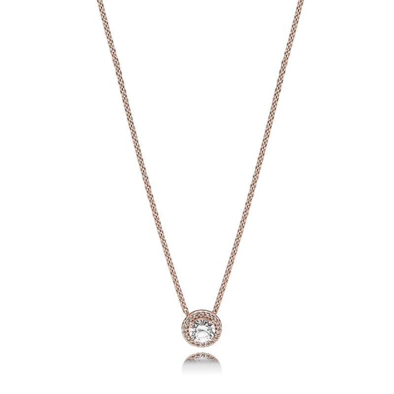 Collar Collier en PANDORA Rose con 1 piedra central con corte en forma de garra y 22 circonitas cúbicas claras y collar de 45 cm, ajustable a 42 cm y 38 cm