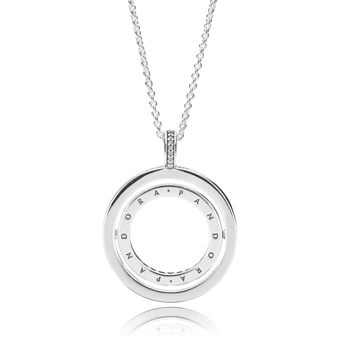 Collar PANDORA Corazones Girando en plata de primera ley, adornado circonitas cúbicas transparentes y cadena de 60 cm deslizante.