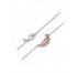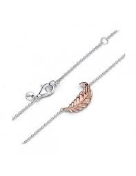Collar Pluma Curvada Flotante en Dos Tonos Este collar se presenta con una pluma con recubrimiento de oro rosa de segunda ley de 14k embellecida con brillantes circonitas cúbicas en una mitad y metal pulido en la otra. La punta de la pluma se curva alrededor del aro que la fija a la cadena de plata de primera ley, creando la ilusión de que flota en tu cuello. El extremo de la cadena está acabado a mano y embellecido con un disco redondo con un grabado de la O coronada de Pandora y tres aros que aportan versatilidad al estilo. Combina este dulce collar con otras joyas con recubrimiento de rosa de 14k para hacer destacar tu brillo primaveral.