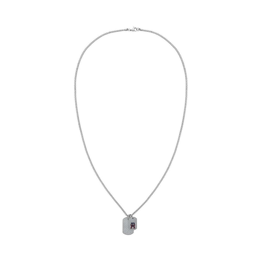 Collar Tommy Hilfiger hombre 2790465 realizado en acero inoxidable con dos colgantes tipo chapa con detalle de la marca.