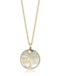 Colgante Viceroy Popular de acero dorado con motivo de árbol de la vida y madre perla. Tipo medallón de 35 mm de diámetro con madre perla y árbol de la vida con dos charms colgando. Largo de 50 cm y 5 cm de extensión.