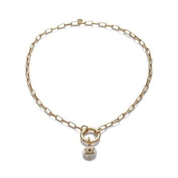 Collar Viceroy Chic en acero dorado, cadena de eslabones y motivo de perla agua dulce con estrella, 42cm + 3cm de largo.