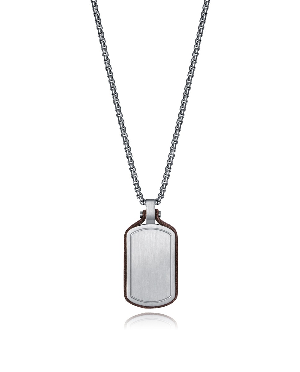 Collar Viceroy Magnum de acero tipo placa militar con reborde de piel marrón. Largo 50cm