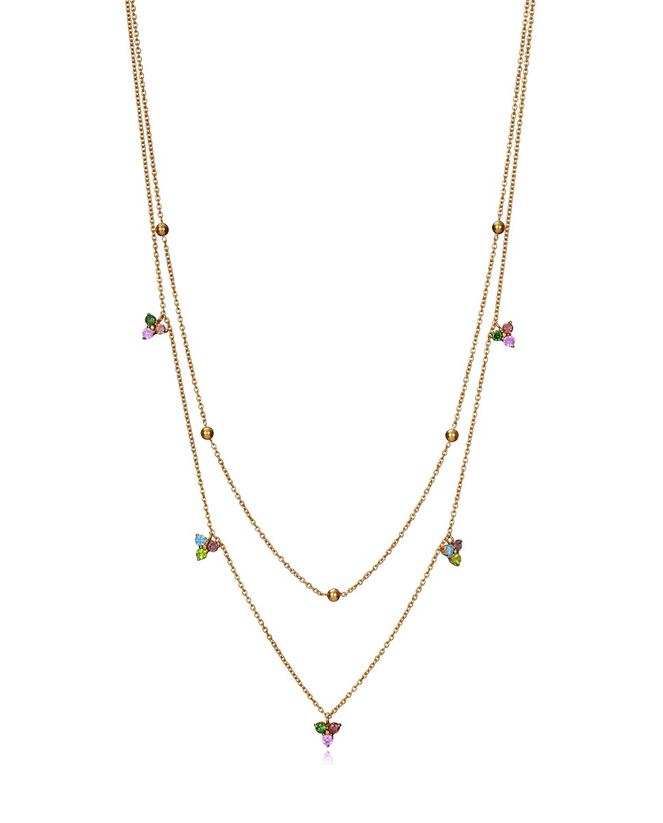 Collar múltiple Viceroy Trend en plata de ley 925 con baño de oro y grupos de 3 circonitas de color de 3mm. Largo de las cadenas 40cm, 45cm y 3cm de extensión