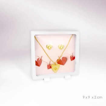 PACK ENAMORADOS DE PENDIENTES Y GARGANTILLA EN PLATA CHAPADA CON CORAZON