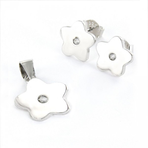 CONJUNTO PENDIENTES Y COLGANTE FLOR CON CIRCONITA 9104006