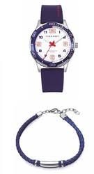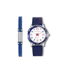 Reloj Viceroy para niño de la colección Next fabricado en acero inoxidable y silicona. Estamos ante un atractivo reloj ideal para comunión compuesto por caja de 36mm de diámetro con bisel azul que contiene esfera blanca con números en azul y rojo y agujas blancas movidas por mecanismo de cuarzo analógico. Todo ello protegido por cristal mineral. Su correa es de silicona en color azul con cierre de hebilla. Resistente al agua hasta 5 ATM.
