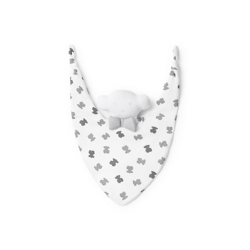 Doudou Baby TOUS de nudos con oso aterciopelado y cuerpo en suave algodón multi osos con pajarita rayada. Ayuda a relajar al bebé en ausencia de mamá. COMPOSICIÓN: 100%Algodón Relleno: 100%Poliéster. Color blanco. Certificado OEKO/TEX*. Fabricado en la UE.