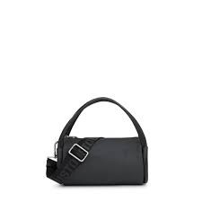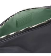 Bolso Duffle pequeño TOUS Miranda Soft de lona con detalles en poliuretano de color gris oscuro. Cierre de cremallera. Asas fijas de hombro y asa bandolera ajustable y extraíble. Medidas (alto x ancho x fondo): 13, 5 x 24 x 6,2 cm.