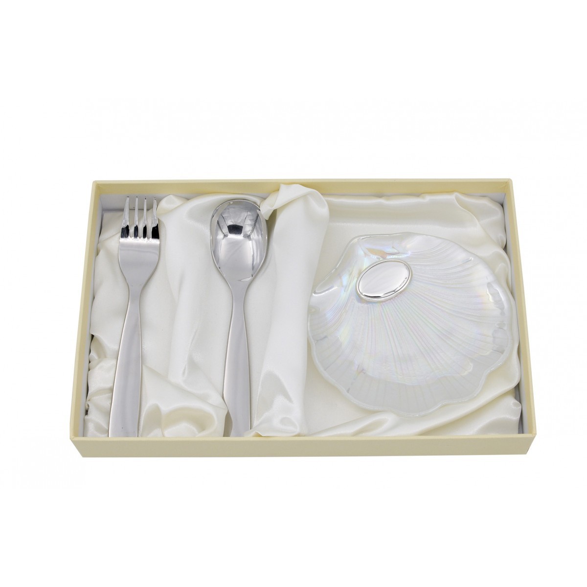 ESTUCHE CONCHA SIMIL NACAR CUCHARA Y TENEDOR ACERO GA1156