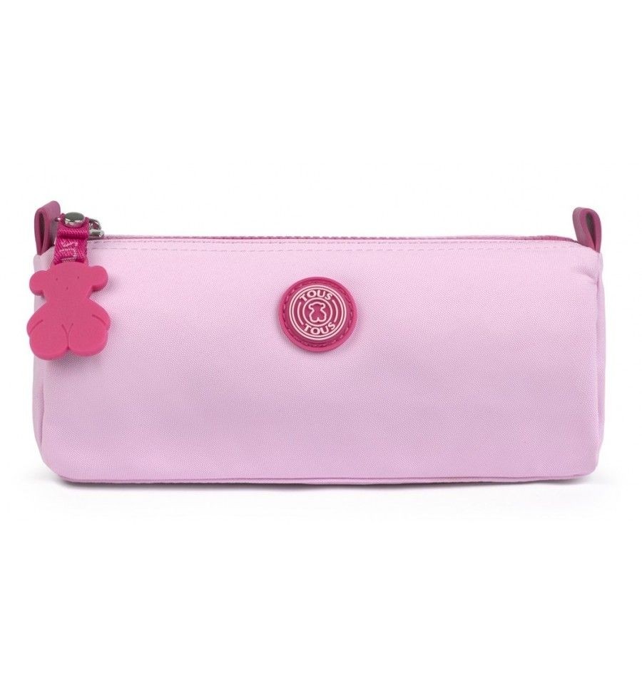 Estuche TOUS colección School en nylon de color rosa combinado con parche de goma. Cierre con cremallera. Apliques personalizados a tono. Medidas: 9x20x7 cm.