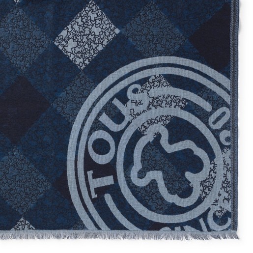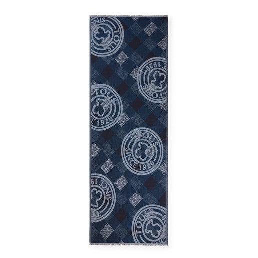 Foulard TOUS de la colección Kaos Mini Stamp de jacquard en color azul. Composición: algodón y modal. Medidas: 200 x 75 cm.