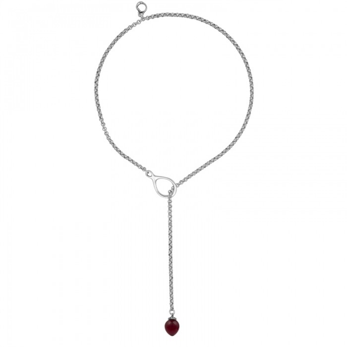 Collar corbatero amira con cadena de la colección Alhambra. Remate de gota en cristal de murano. Fabricado en metal hipoalergénico bañado en plata. Talla única de 54cm.