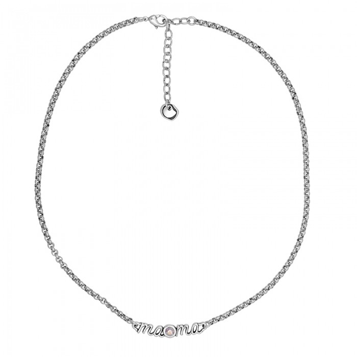 Collar para mamá Por siempre con cadena de rolo y detalle de cristal Swarovski . Mide 40cm pudiendo ampliarse a 45cm. Fabricado por Ciclón de manera artesanal en metal y bañado en plata.