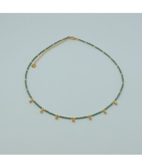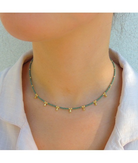 GARGANTILLA IVOIRE EN ACERO DORADO CON PIEDRAS AZUL GRISACEAS