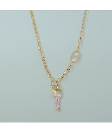 GARGANTILLA IVOIRE METAL DORADO LLAVE CIRCONITAS Z2015118/D