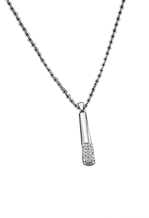 Colgante de acero en forma de barra con circonitas y cadena. Colgante exclusivo del muestrario de joyas Lotus Style, fabricado en acero.