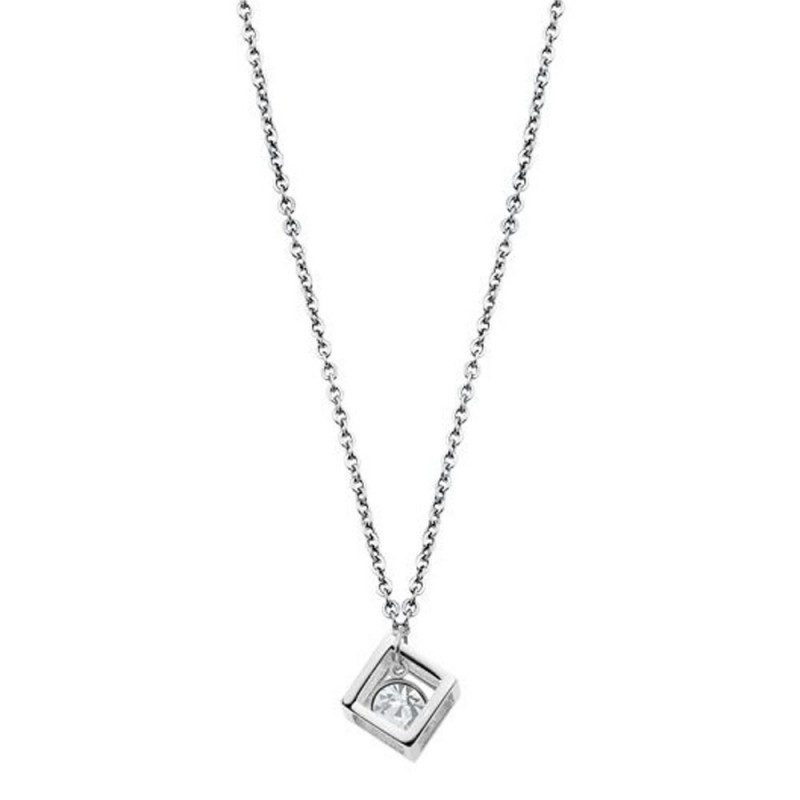 Es un collar original de la marca Lotus Style, para mujer. Está fabricado en acero antialérgico e inoxidable, con un colgante en forma de cubo decorado con circonita cúbica transparente en su interior colgante. El collar tiene una medida de 45+5 centímetros regulables gracias a sus eslabones con cierre de mosquetón.