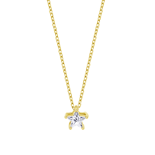 Collar Lotus Silver Plata y circonita LP3834-1/2: Gargantilla realizado en plata de primera ley de acabado pulido con baño de Oro amarillo de la marca Lotus Silver, con diseño de estrella en el colgante, realizada con una circonita transparente engastada en cinco patillas. Una joya para mujeres cosmopolitas, de alma romántica y con identidad propia.