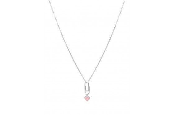 COLLAR MAREA COLECCION GIRLS PLATA DE LEY CON CLIP COLGANTE CORAZON ESMALTE ROSA