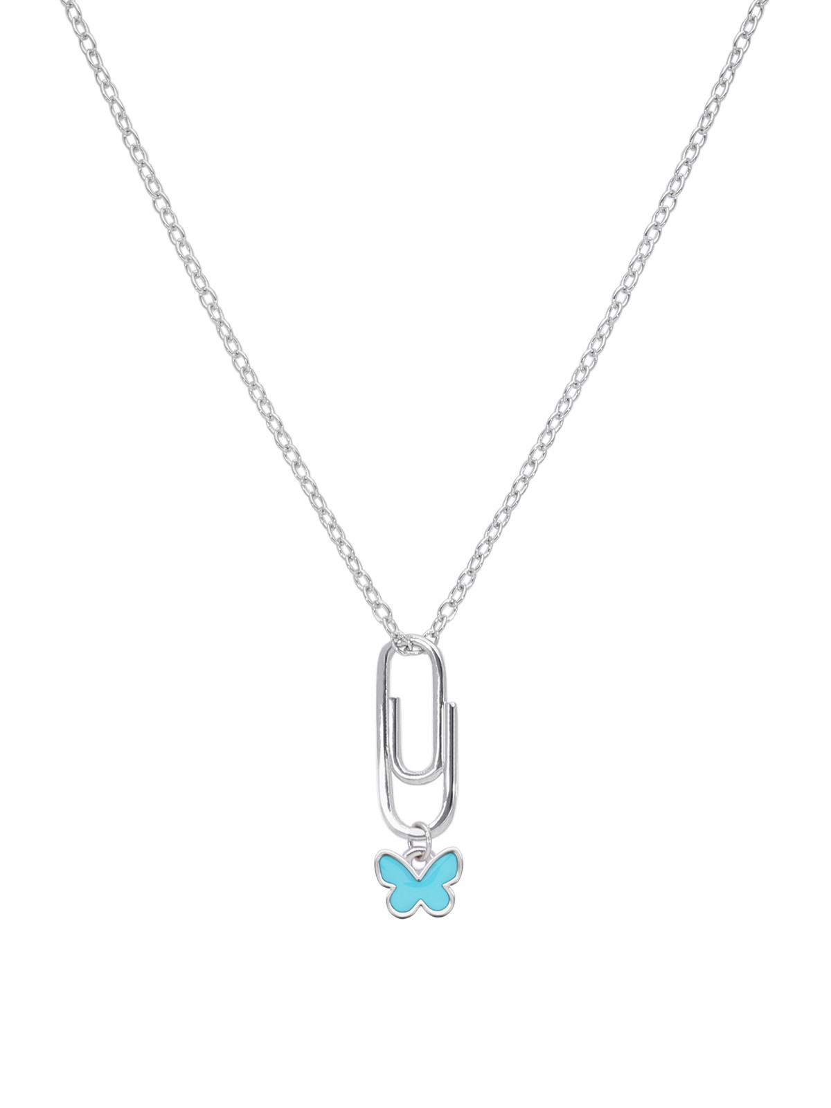 Collar clip mariposa. Plata de 1ª Ley rodiada. Esmalte turquesa. Cierre rehasa. Cadena adaptable. Colección girls.