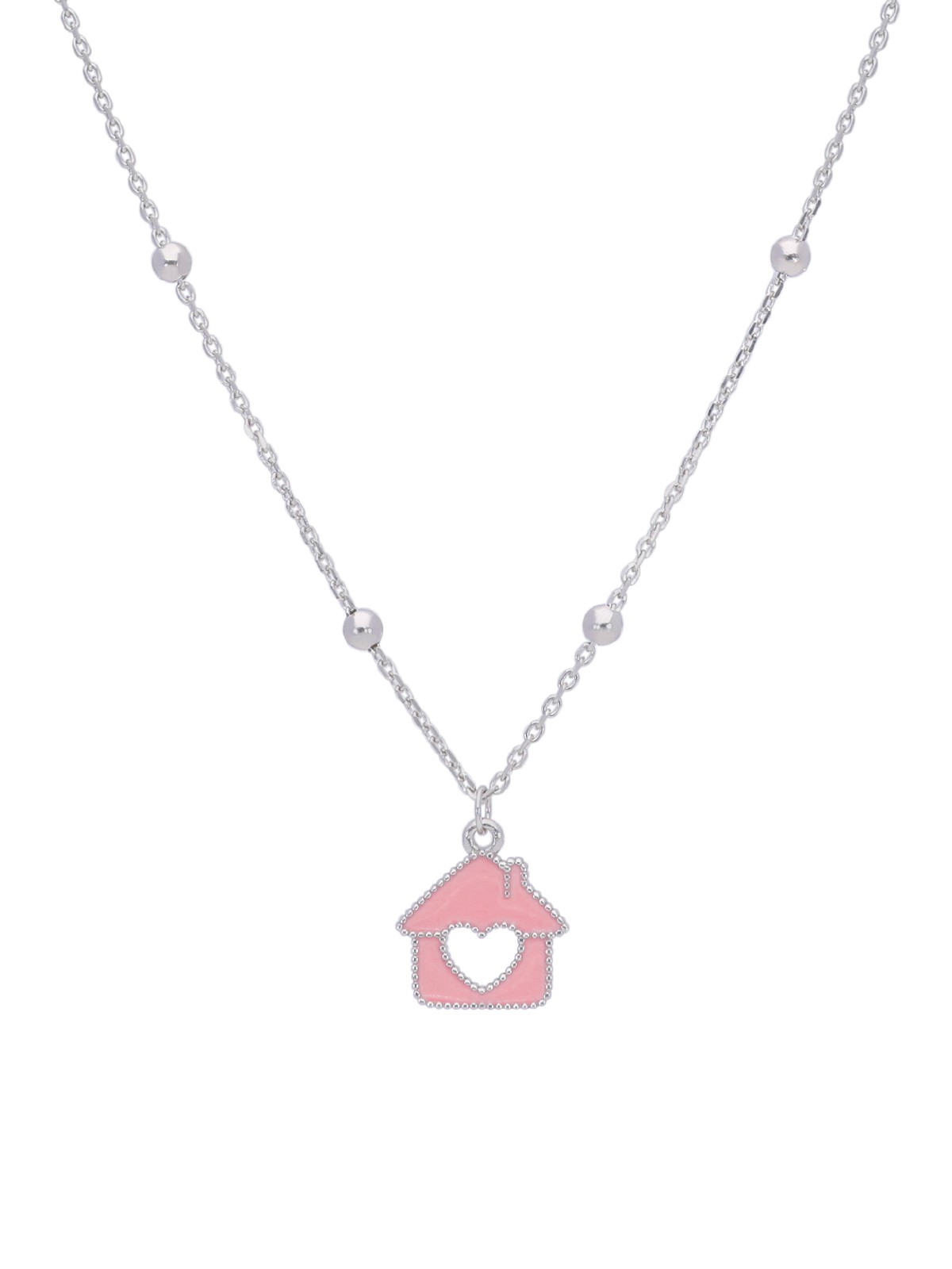 Collar casita. Plata de 1ª Ley rodiada. Esmalte rosa. Cadena de bolas. Cierre rehasa. Cadena adaptable. Colección girls.