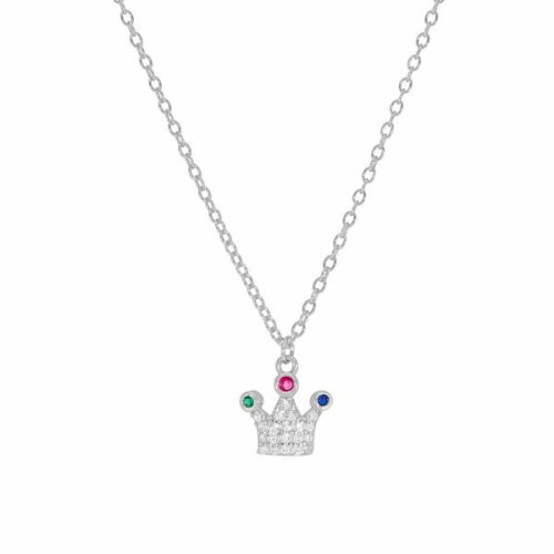 Collar de Plata para niñas con colgante de corona y circonitas. Largo cadena: 35 + 5 cm.