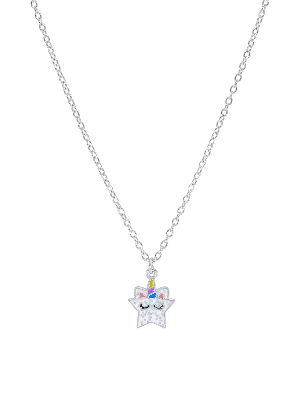 Collar unicornio estrella. Plata de 1ª Ley rodiada. Esmalte multicolor. Detalles con purpurina. Cierre reasa. Cadena adaptable. Medida: cadena: 35 cm. + 5cm. Unicornio estrella: 10mm.