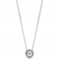 Collar Pandora Plata Elegancia Clásica 396240CZ-45. Es un collar en plata de primera ley de la marca Pandora, La cadena tiene una longitud de 45cm. Adornado por un colgante en forma circular decorado con circonitas cúbicas transparentes.