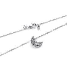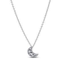 Gargantilla Pandora Luna Creciente para mujer de la colección Navidad 2025 fabricada en plata de primera ley compuesta por una elegante cadena que da lugar a un colgante en forma de media luna compuesta por circonitas cúbicas transparentes. Su cierre es de mosquetón ajustable mediante cadena extensible.