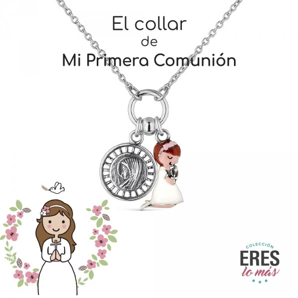 Collar Eres lo mas Comunión cadena forzada con aro y dos motivos colgando