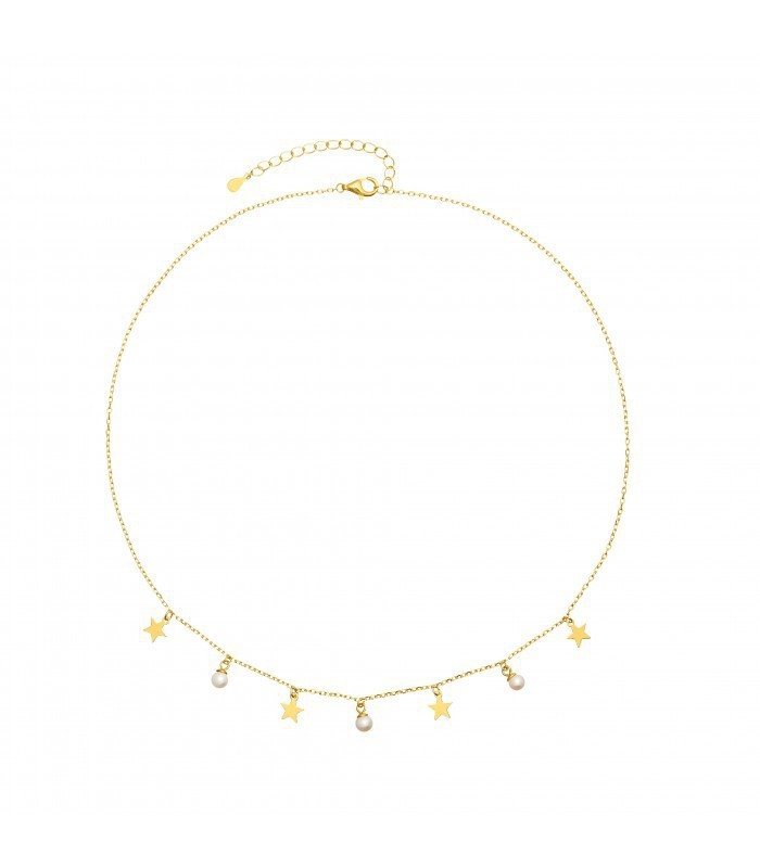 GARGANTILLA PLATA CHAPADA 4 ESTRELLAS 3 PERLAS GA1506CH