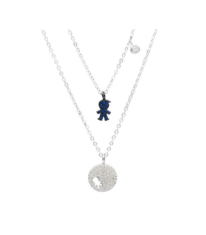GARGANTILLA PLATA DOBLE CIRCULO Y NI?O AZUL GA1173/03