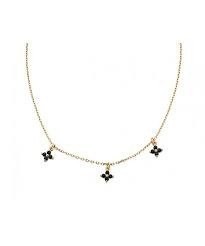 GARGANTILLA PLATA DORADA 3 FLORES CIRCONITAS NEGRAS 00510594