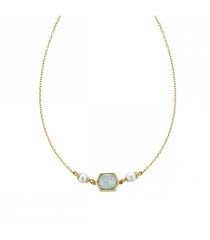 GARGANTILLA PLATA DORADA CON AGATA Y DOS PERLAS 00511483
