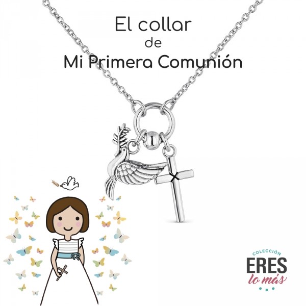 Collar Eres lo mas Comunión cadena forzada con aro y dos motivos colgando