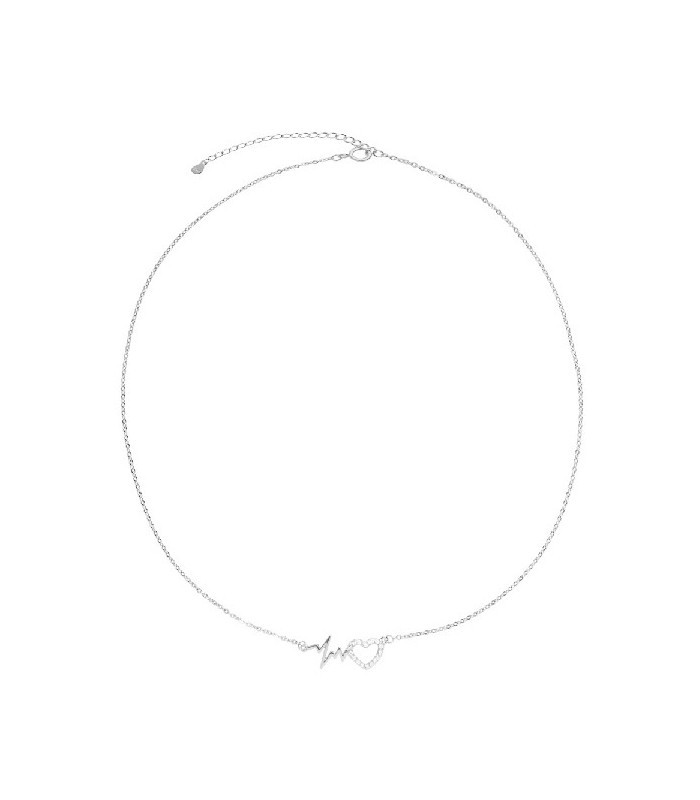 GARGANTILLA PLATA LINEA DE LA VIDA CON CORAZON DE CIRCONITAS GA1396