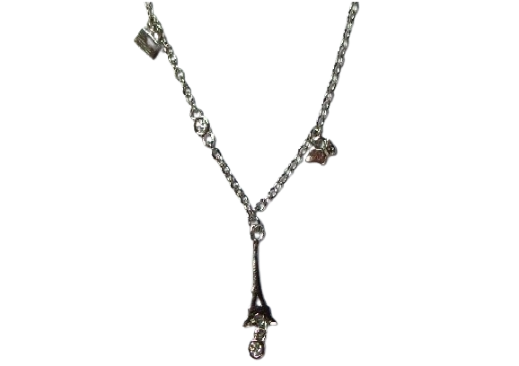 GARGANTILLA PLATA TORRE EIFFEL MALETA Y PERRO GA1451