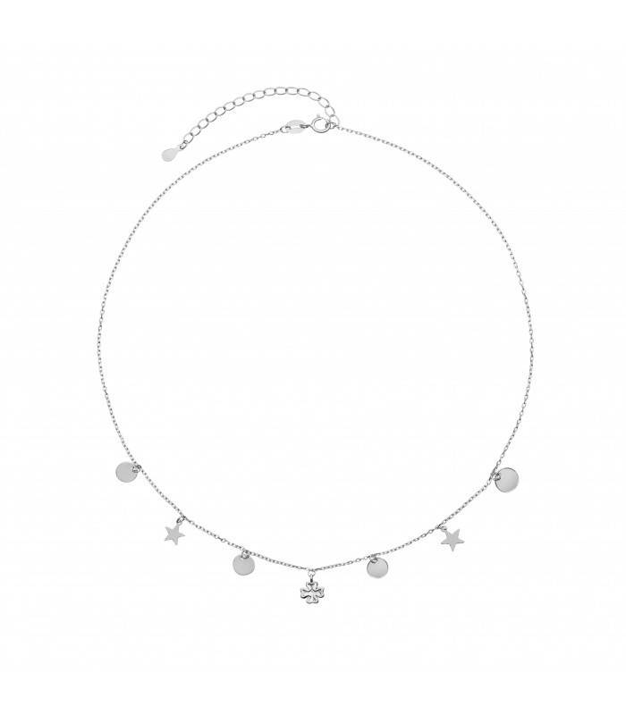GARGANTILLA PLATA TREBOL DISCO ESTRELLA LISO GA1537R