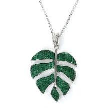 GARGANTILLA PROMOJOYA PLATA HOJA CIRCONITAS VERDES