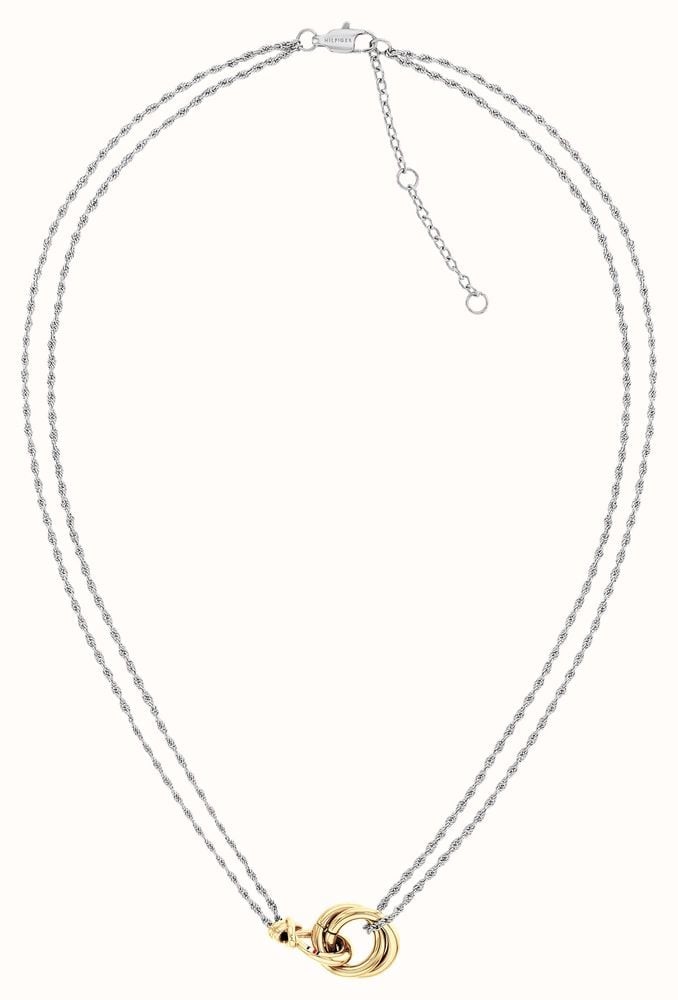collar de Tommy Hilfiger combina acero inoxidable resistente con un llamativo nudo náutico dorado en el centro, ofreciendo un estilo fresco de inspiración marítima. Con un sutil detalle de la marca y un largo ajustable, se ajusta a la perfección con una elegancia discreta, ideal para añadir un toque sofisticado a cualquier look.