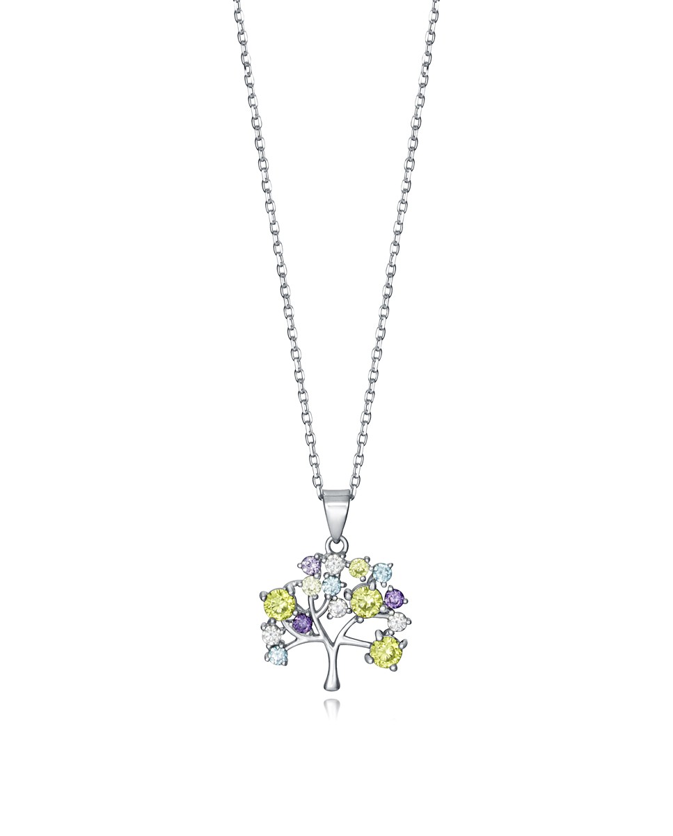 Collar Viceroy de Plata de ley con árbol de la vida y circonitas de color, largo 42 + 3 cm.