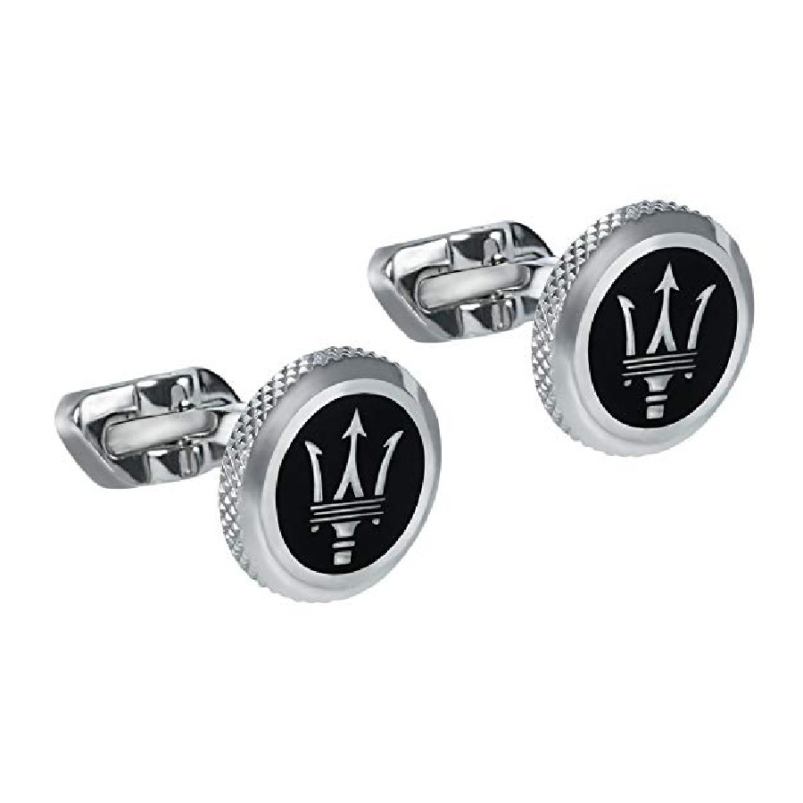 GEMELOS MASERATI ACERO ESMALTE NEGRO Y LOGO JM416AIL03