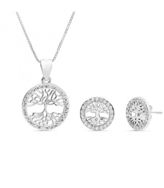 JUEGO PENDIENTES Y GARGANTILLA PLATA ARBOL VIDA JU2976