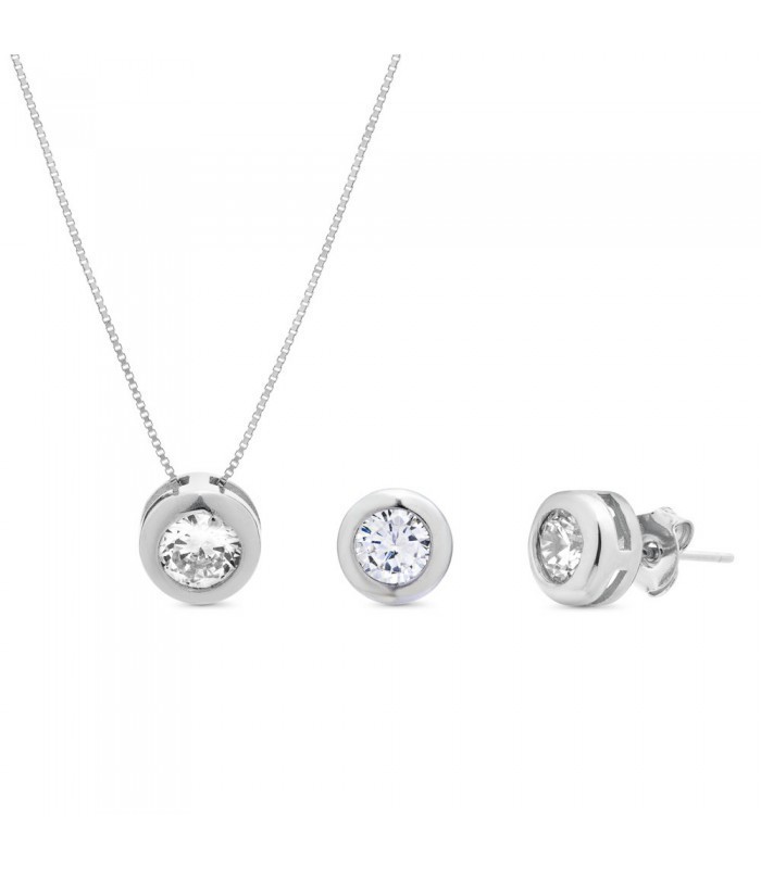 JUEGO PENDIENTES Y GARGANTILLA PLATA CHATON JU3068